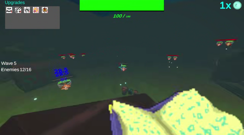 Now the player HUD looks a lot more interesting and unique with stylized health bar, upgrades window and wave info window: